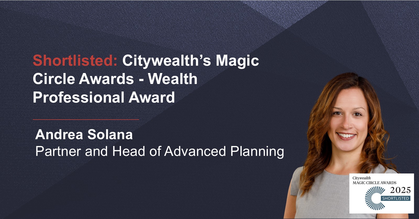 Andrea Solana Shortlisted for Citywealth Magic Circle Awards 2025