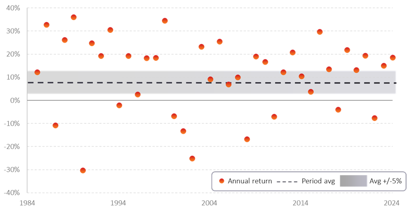 Source: Albion Strategic Consulting. Albion World Stock Market Index. 1985-2024. Returns in USD.